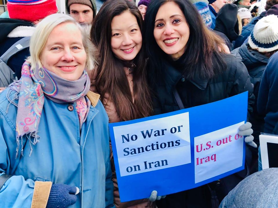 yesterday’s rally at yesterday’s anti-war rally with the wonderful kit miller and the luminous Pamela Kim [photo courtesy of pam] kit miller, pamela kim and mara ahmed