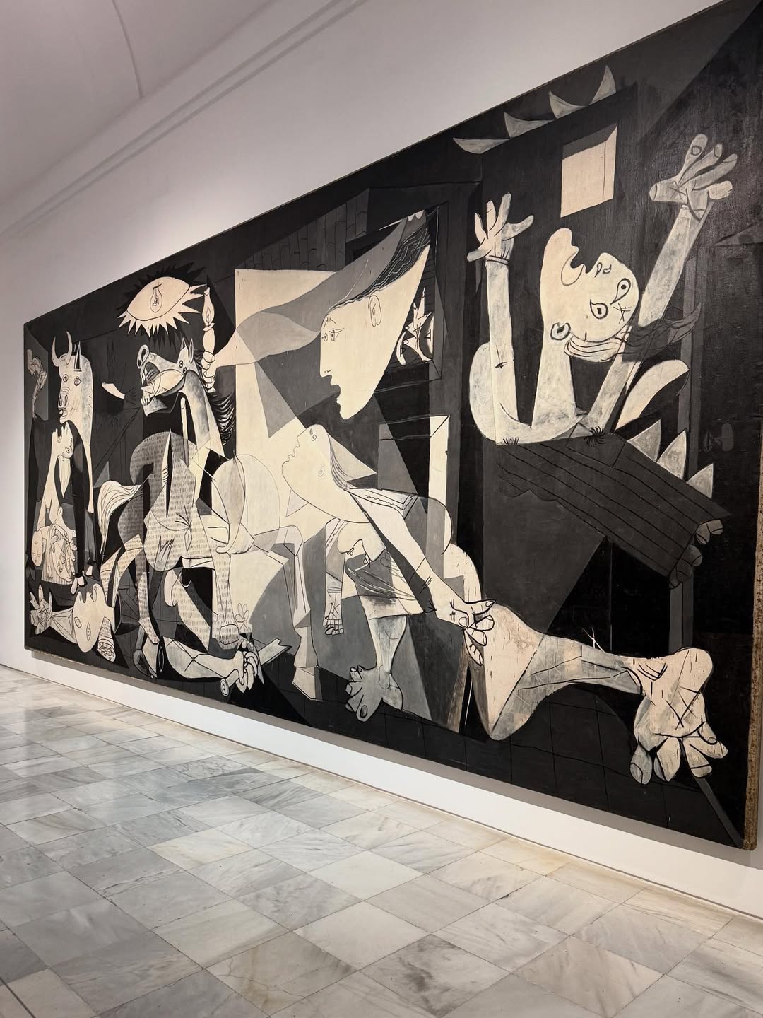 was standing in front of picasso’s guernica today at the museo reina sofía (here in madrid) and tearing up as i thought about palestine when i got a message from my beautiful friend ashwaq, still besieged in gaza, sending prayers for my family and pakistan’s safety. what incredible generosity and thoughtfulness. i am constantly reminded of the beauty, strength and humanity of palestinian culture and what an asset it is to our world. i dream of visiting my friend one day soon, of having tea together and talking about our lives, of meeting her family and perhaps going for a walk, of hugging her for a long time. nothing major. just little moments that mark the passage of time, the shape of our lives, the connections that nourish us. yet a bunch of small, unimaginative, power-hungry men can make such ordinary dreams impossible. it shouldn’t be so…