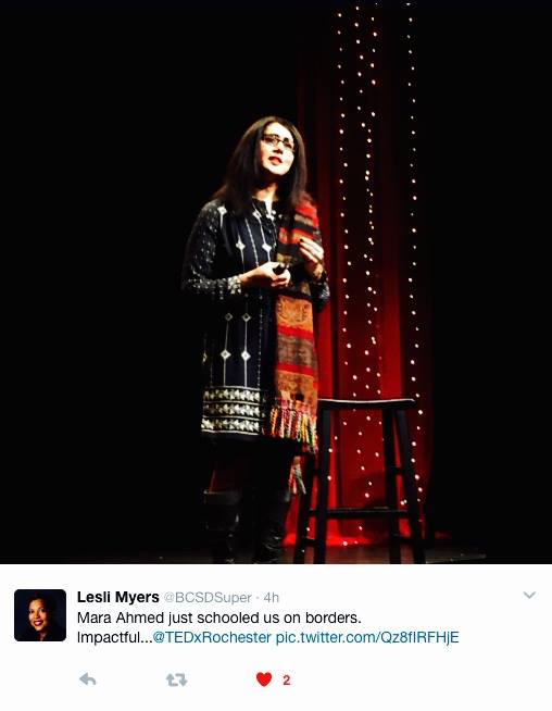 As much as I agree with Aamer Rahman’s critique of Ted Talks (“pacing around on stage with a headset recycling some basic ideas dressed up as apolitical new-age empowerment rhetoric while an audience of middle-class white ppl claps for itself”), I am preparing to speak about “borders” and what they mean to my film/art work as well as my journey as a human being and activist. It’ll be at Geva Theatre Center on March 3rd. As with everything else I do, this TEDxRochester talk will be infused with politics. And I will try not to pace around too much 🙂