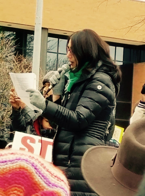 great rally in support of #StandingRock in rochester today. it was painfully cold but about 75 people showed up, including wonderful young women from the muslim community. thx for stepping up Fathima and Navaira and thx for organizing Luc Watelet and Lisa Giudici. #NoDAPL