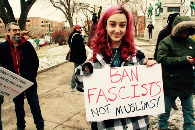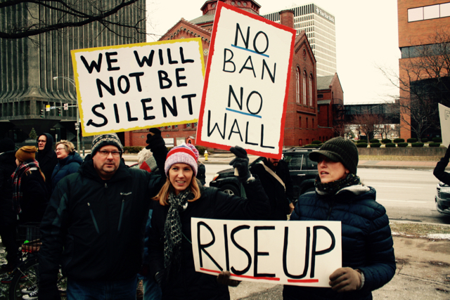 another rally in support of #NoBanNoWall at rochester’s city hall yesterday. proud of all the young people who took part in it and spoke up for the muslim community. photographs from Rochester Global Refugee Services Inc.